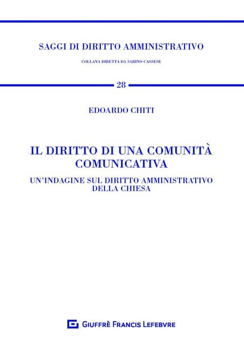 Il prossimo 21 febbraio, alle ore 15.45, presso la sede dell’università LUISS Guido Carli di Roma, si terrà la presentazione del volume di Edoardo Chiti, Il diritto di una comunità comunicativa. Un’indagine sul diritto amministrativo della Chiesa, edito dalla casa editrice Giuffré.
