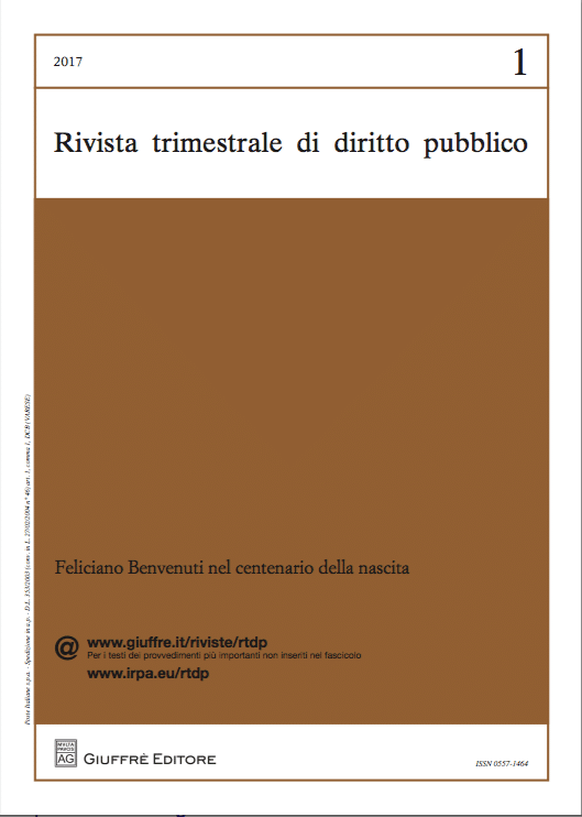 Il saggio intende offrire una panoramica complessiva dell’opera di Feliciano Benvenuti, con specifica attenzione all’importanza che in essa hanno rivestito i temi squisitamente organizzativi e la riflessione sul ruolo delle autonomie regionali e locali. In particolare, l’autore si propone di dimostrare come, per Benvenuti, i profili organizzativi abbiano una funzione essenziale nel diritto amministrativo, in ragione della loro stretta attinenza al problema della definizione dell’identità costitutiva dell’ordinamento giuridico. È da tale presupposto, infatti, che Benvenuti ha potuto costruire, nel corso del tempo, una complessa e articolata concezione “repubblicana” del diritto amministrativo.
